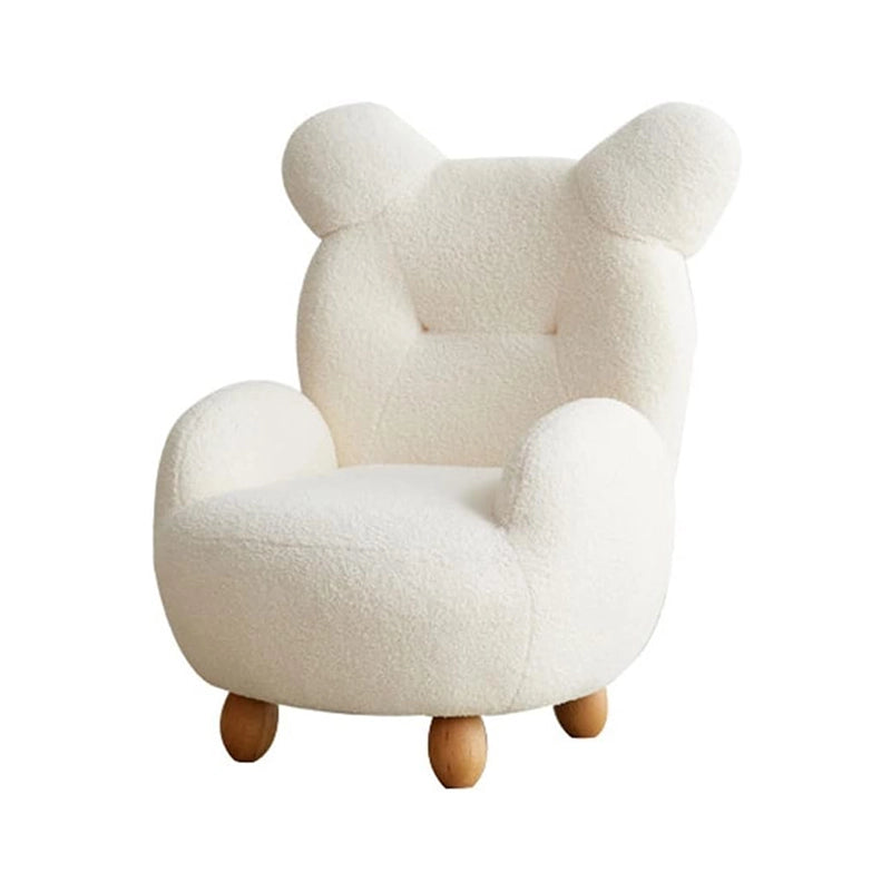 This Scandinavian-inspired accent armchair merges playful form with modern utility. Its plush off-white bouclé upholstery complements the bear-ear styled backrest and cocoon-like rounded frame, while the compact footprint makes it ideal for small-space layouts. The seat’s sculpted comfort is matched by the structural durability of a neem wood base. Whether placed as a single seater sofa or used as a standout individual sofa chair, this armchair works seamlessly across living spaces, reading corners, or nurseries. Functional, aesthetic, and joyfully unique, this sofa chair is perfect for a cozy lounge setup.
