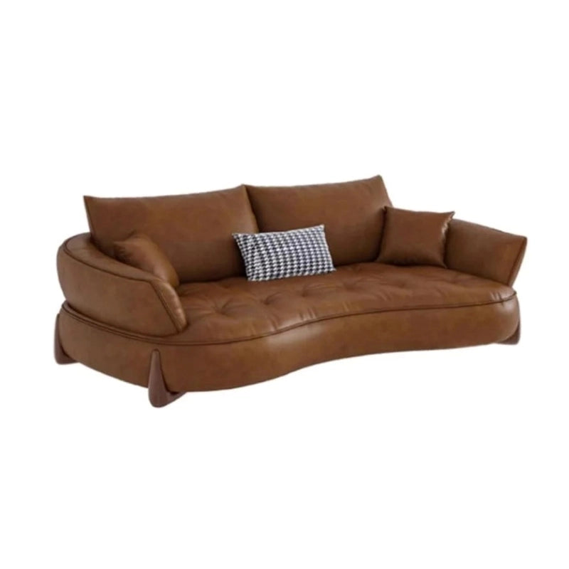 This modern leatheratte sofa fuses sculptural fluidity with ergonomic lounging, offering a soft-edge silhouette that enhances contemporary Indian interiors. The contoured back and deeply padded seats bring a sense of tailored comfort, while the gentle wave-like profile introduces visual flow. Supported by solid wooden legs, its well-balanced frame ensures durability without bulk. Ideal as a centrepiece or part of a coordinated layout, this design elevates everyday living with elegance, comfort, and refined craftsmanship—making it an excellent fit for those seeking understated luxury in a designer couch format.