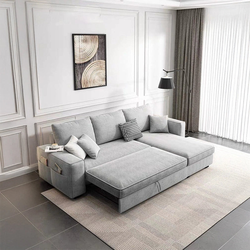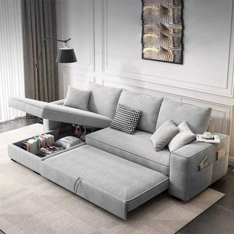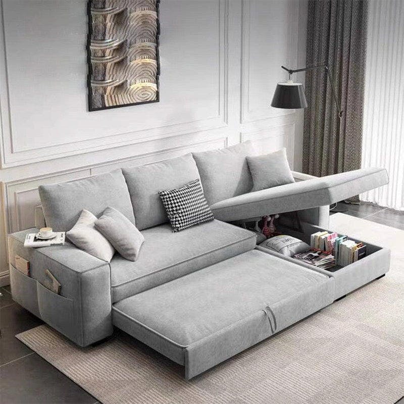 Sleek L-shape sofa bed couch with storage – sofa cum bed, convertible sofa bed – grey fabric